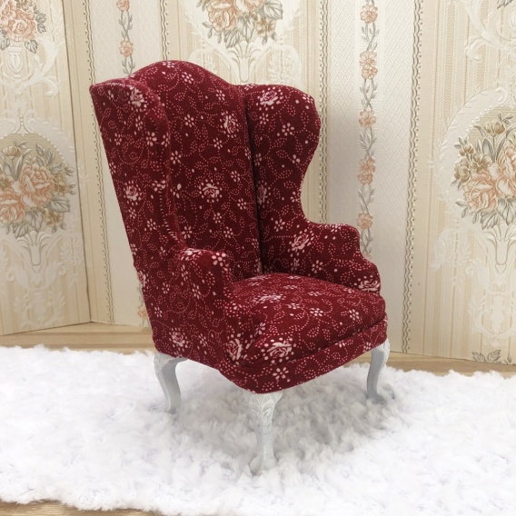 🛋️ Miniaturowy fotel uszak do domku dla lalek (skala 1:6) — czerwień + białe kwiatuszki
