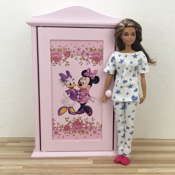 Drewniana szafa dla lalek i zegar „Różowy Ogródek” – bajkowy akcent w pokoju Twojego dziecka! ✨