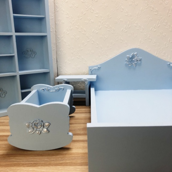 ✨ Błękitne lub białe mebelki dla lalek z ornamentem 3D – SREBRNE RÓŻYCZKI